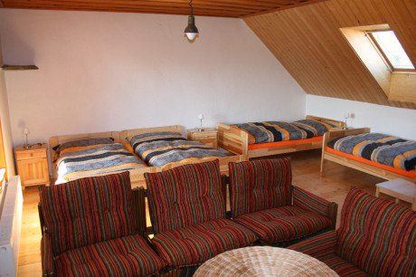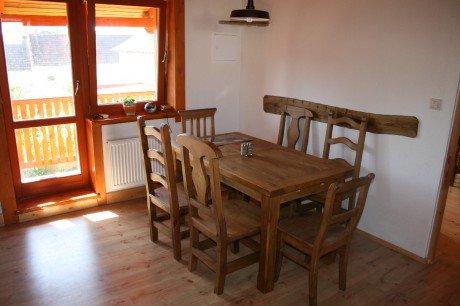 Príslušenstvo/vybavenie : | Nájdete tu jednu 4-posteľovú a jednu 2-posteľovú izbu, pričom obidve izby majú vlastné sociálne zariadenie. Medzi izbami sa nachádza kuchynka, v ktorej okrem rúry na pečenie nájdete všetko potrebné pre prípravu jedál. Zo všetkých týchto miestností , ktoré sú na poschodí, môžete vyjsť na balkón , z ktorého uvidíte časť Nízkych Tatier. |