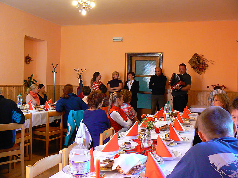 Poslednú septembrovú sobotu MS SČK pripravil pre darcov krvi spoločné posedenie. Za tri a pol roka darovalo krv 45 občanov Smrečian. Každý z nich dostal pozvánku i osobné pozvanie, ktoré prijalo rovných dvadsať darcov. Za všetkých poďakovala pani Gažová, pripomenula nám, že nezáleží, či dal niekto krv raz, či desať ráz, keď ide o záchranu života, každá kvapka je dôležitá. Pozvanie prijal aj zástupca Obecného úradu v Smrečanoch Martin Šimún. Vyslovil poďakovanie všetkým darcom za ochotu darovať krv, za ich prejav humanity. Rovnako vyslovil vďaku výboru MS SČK za prácu, ktorú vykonávajú v prospech iných. Nezostalo len pri slovách. V rukách darcov si našli svoje miesto „kvietky vďaky“ a správnu náladu vytvorilo vystúpenie smrečianskej folklórnej skupiny. Potom už prišiel na rad vydarený guláš od kuchárov p. Kováča Petra a p. Pepicha i rozhovory pri kávičke a koláčikoch. Príjemná atmosféra a dobrá nálada nám bola poďakovaním za strávené popoludnie. Veď aspoň takouto formou sme vyjadrili každému z našich darcov úctu a vďaku za to, čo robia – a to nielen slovom, ale i skutkom. Ešte raz: Vďaka Vám!